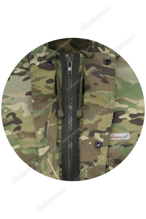 - 5 карманов: 1 нагрудный для противомоскитной сетки, 2 объемных накладных кармана с клапаном на кнопке, 2 объемных накладных кармана с застежкой на молнию